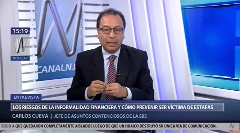 Entrevista Los riesgos de la informalidad financiera 22 FEBRERO 2019 Entrevista a Carlos Cueva, Jefe de Asuntos Contenciosos. Noticiero Canal N.